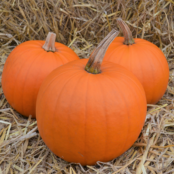 Dark orange, exceptionally smooth-skinned fruits, making it ideal for carving or painting Halloween faces. The size is desirable for young hands, weighing 2.5-4kg with a strong, long handle. Semi-Bush Habit.