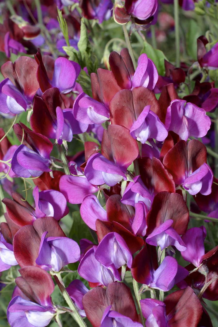 Descendant of the very first Sweet Pea to arrive in England. Bi-coloured deep maroon and pale violet flowers are produced continuously over a long period. Very highly scented. Height 3m (10ft). s/c 15 per g. Hardy Annual.