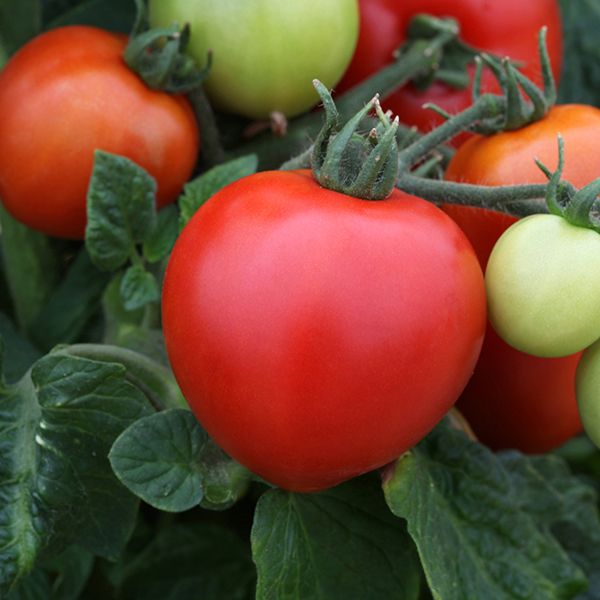 A compact tomato producing unusually large fruit for the size of plant. Multi-lobed with high percentage of flesh