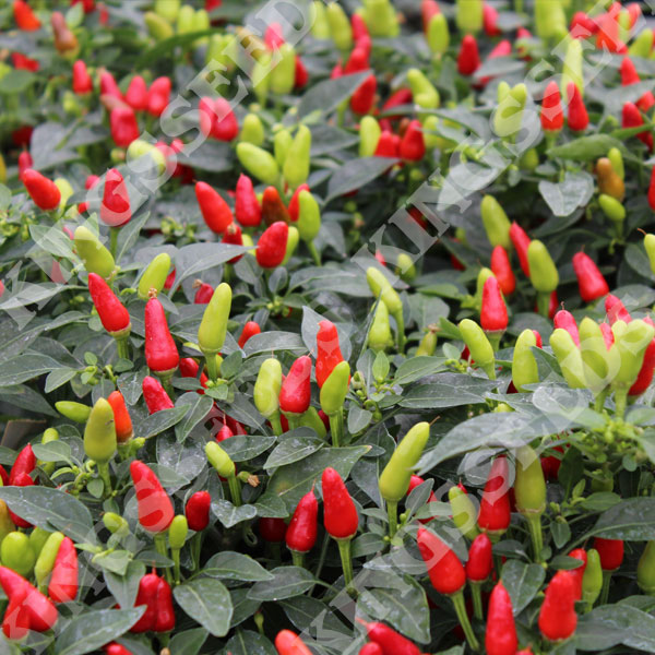 A stunning long-lasting, pot plant chilli, ideal for the windowsill, producing masses of upright small 3cm tapered, green to bright red fruits with a hot and fiery taste and 38,000 Scoville units pungency.