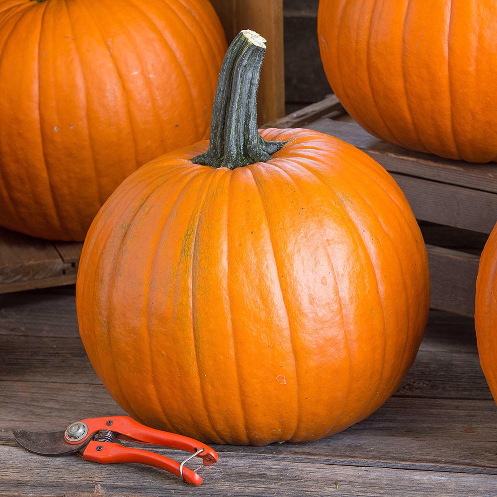 Uniform oval fruits with dark orange colouring and strong handles. Large vine type with mid-season maturity and good yields. Pumpkins will weigh 6-7kg We also have this variety available in treated seed!
